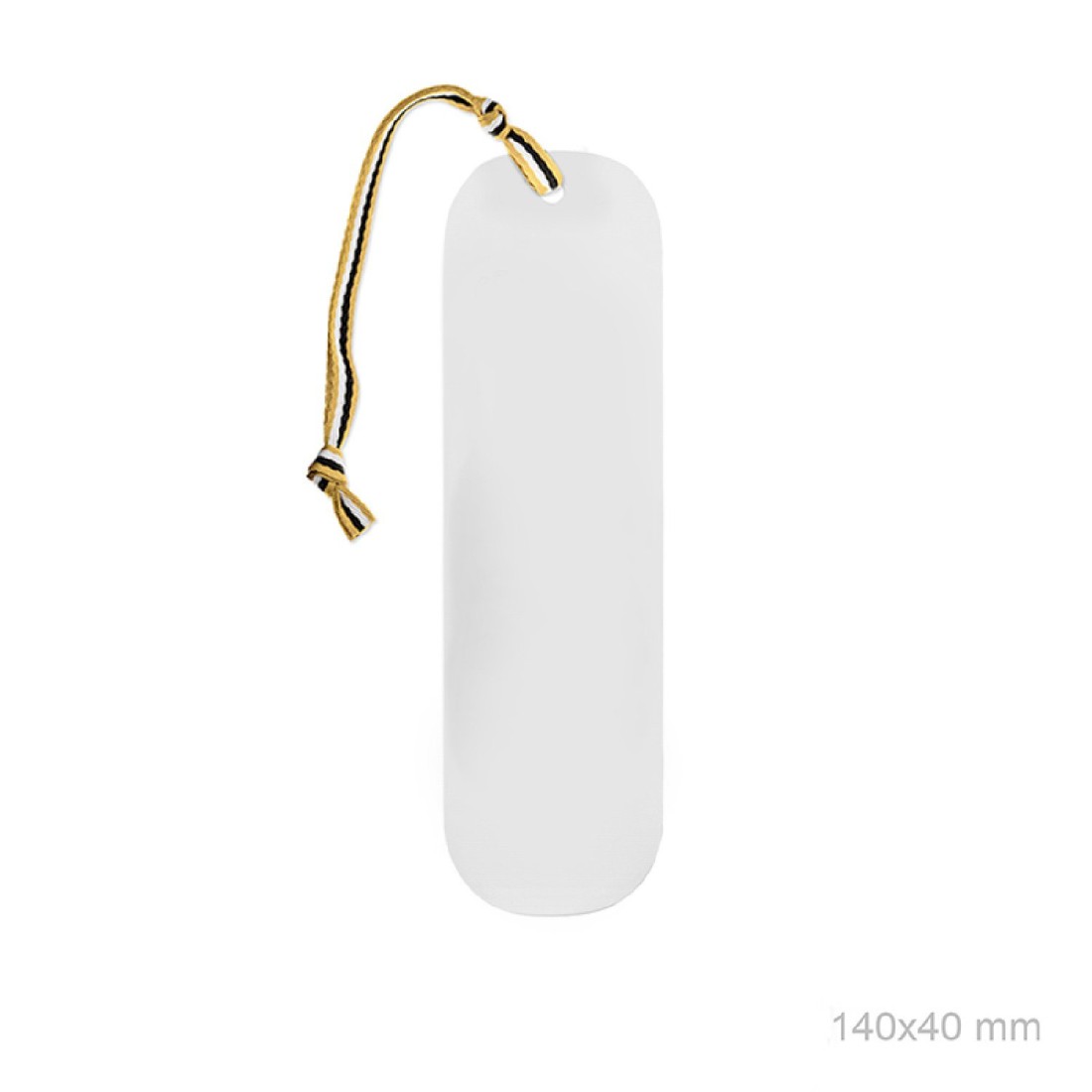 Marcapáginas en Acero con tela algodón amarillo/negro/blanco | 14x4 cm