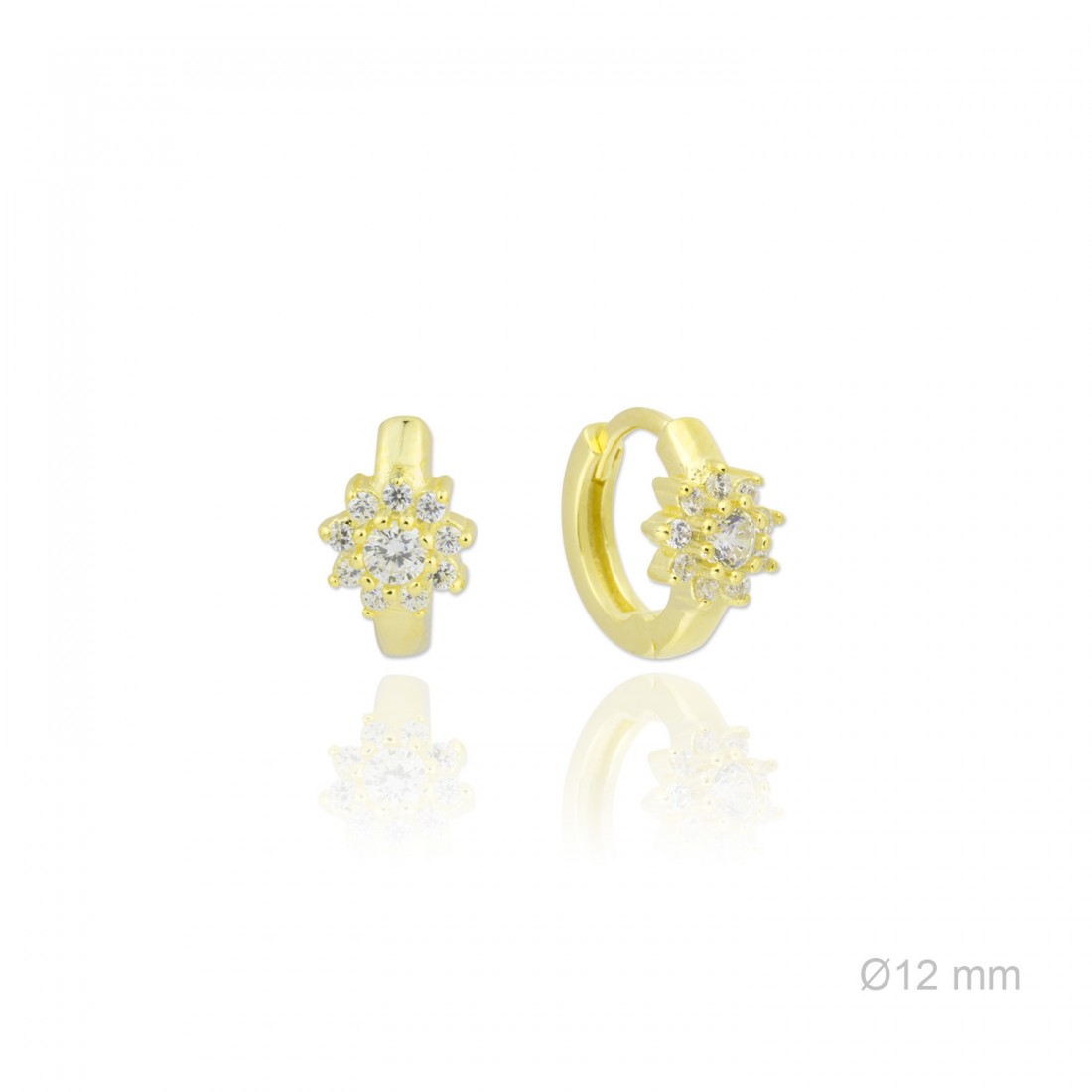 Aros de Plata de Ley chapados en oro de 12 mm de diámetro con circonitas blancas. Cierre de bisagra. Incluye caja.