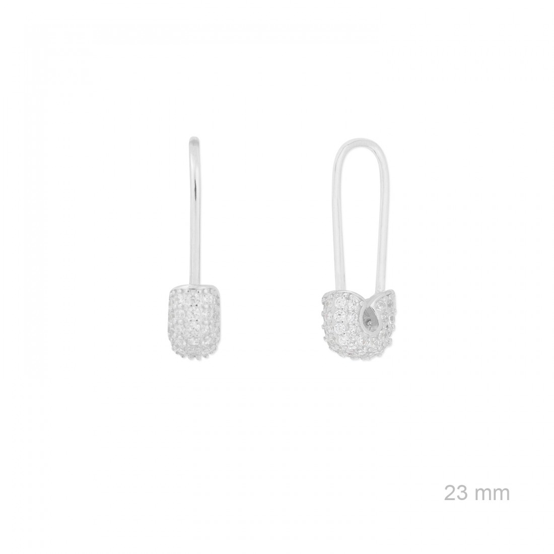 Pendientes de Plata de Ley con forma de imperdible de 23 mm de alto con circonitas blancas.