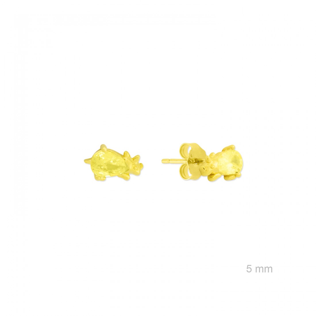 Pendientes de Plata de Ley chapados en oro con forma de dinosaurio de 5 mm de alto y circonita color amarillo.