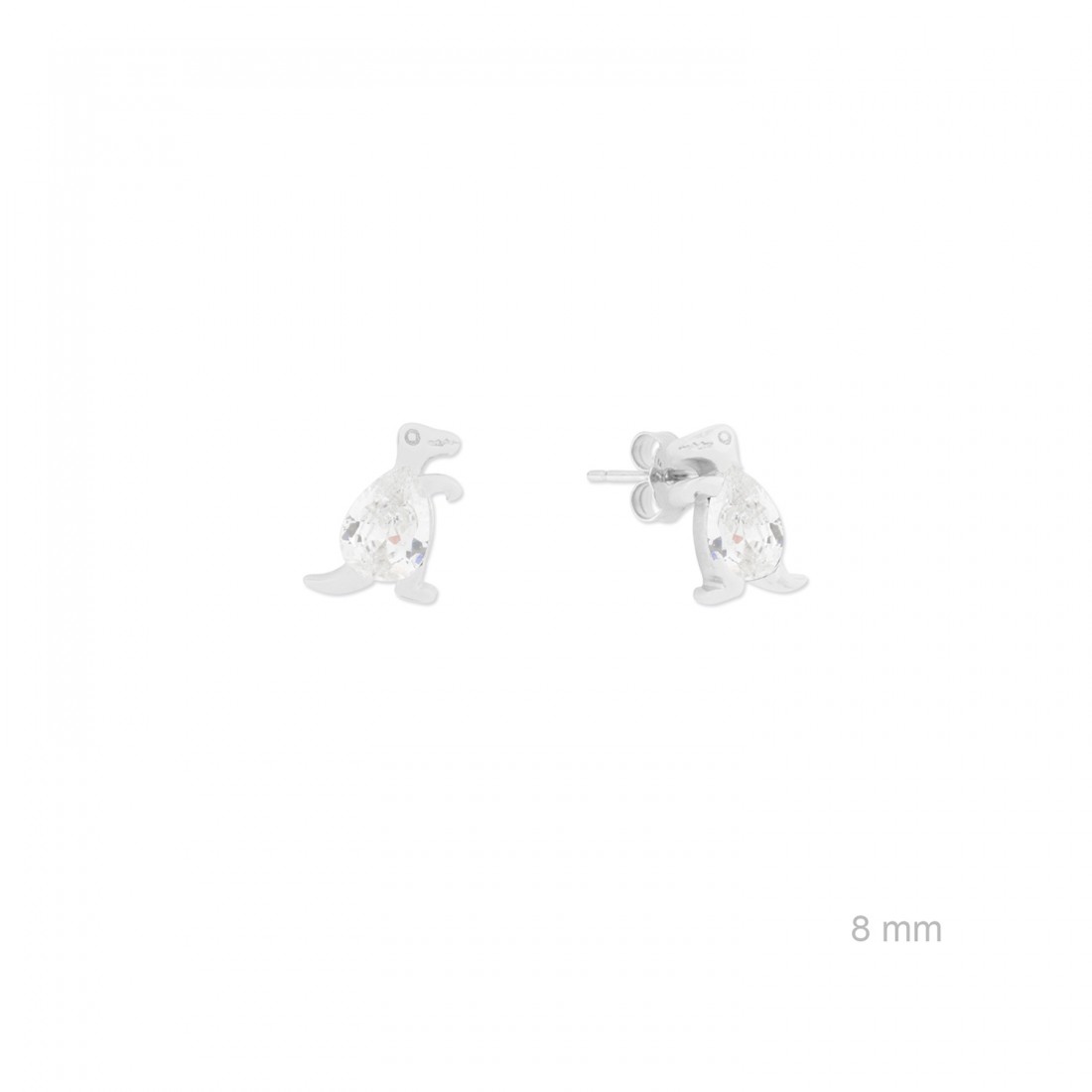 Pendientes de Plata de Ley con forma de dinosaurio de 8 mm de alto y circonita blanca.