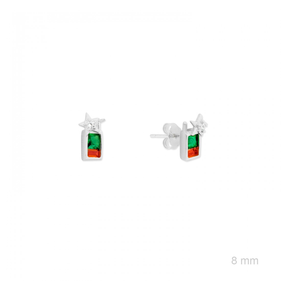 Pendientes de Plata de Ley con forma de cocktail de mojito de fresa de 8 mm de alto y circonitas de color blanco, verde y rojo.