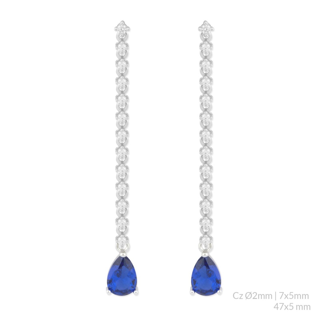 Pendientes de Plata de Ley con circonitas blancas de Ø2 mm y zafiro de 7x5 mm.