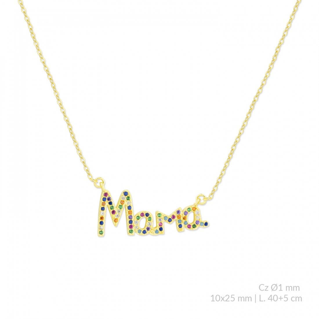 Gargantilla de Plata de Ley chapada en oro con motivo MAMA en circonitas de color de Ø1 mm.