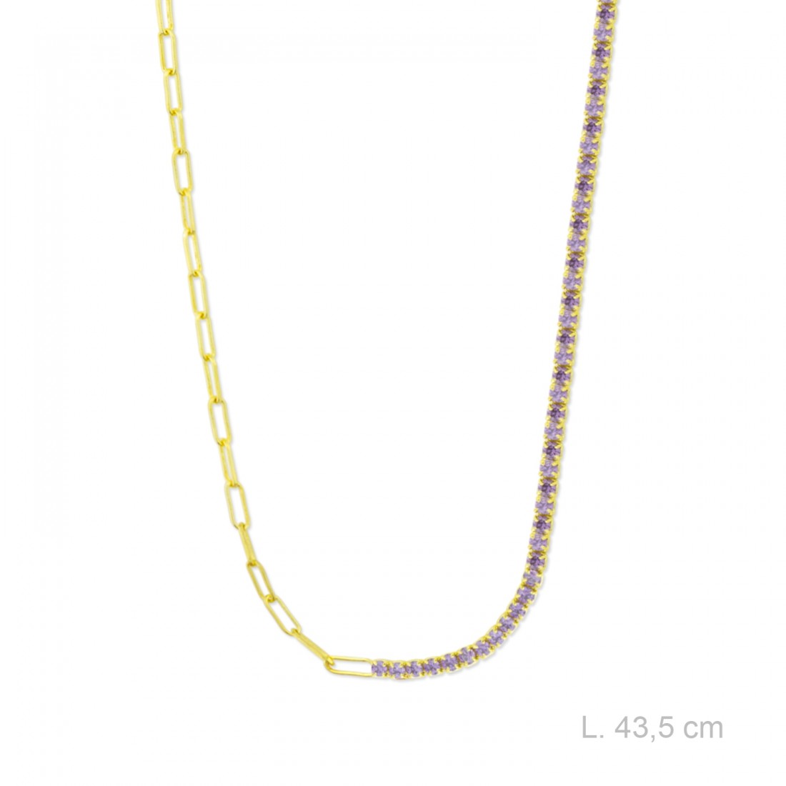 Gargantilla de Plata de Ley chapada en oro con eslabones largos y circonitas color amatista.