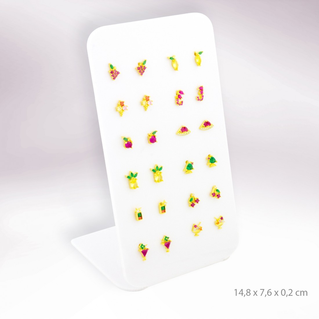 Expositor de resina con 12 pares de pendientes de Plata de Ley chapados en oro.