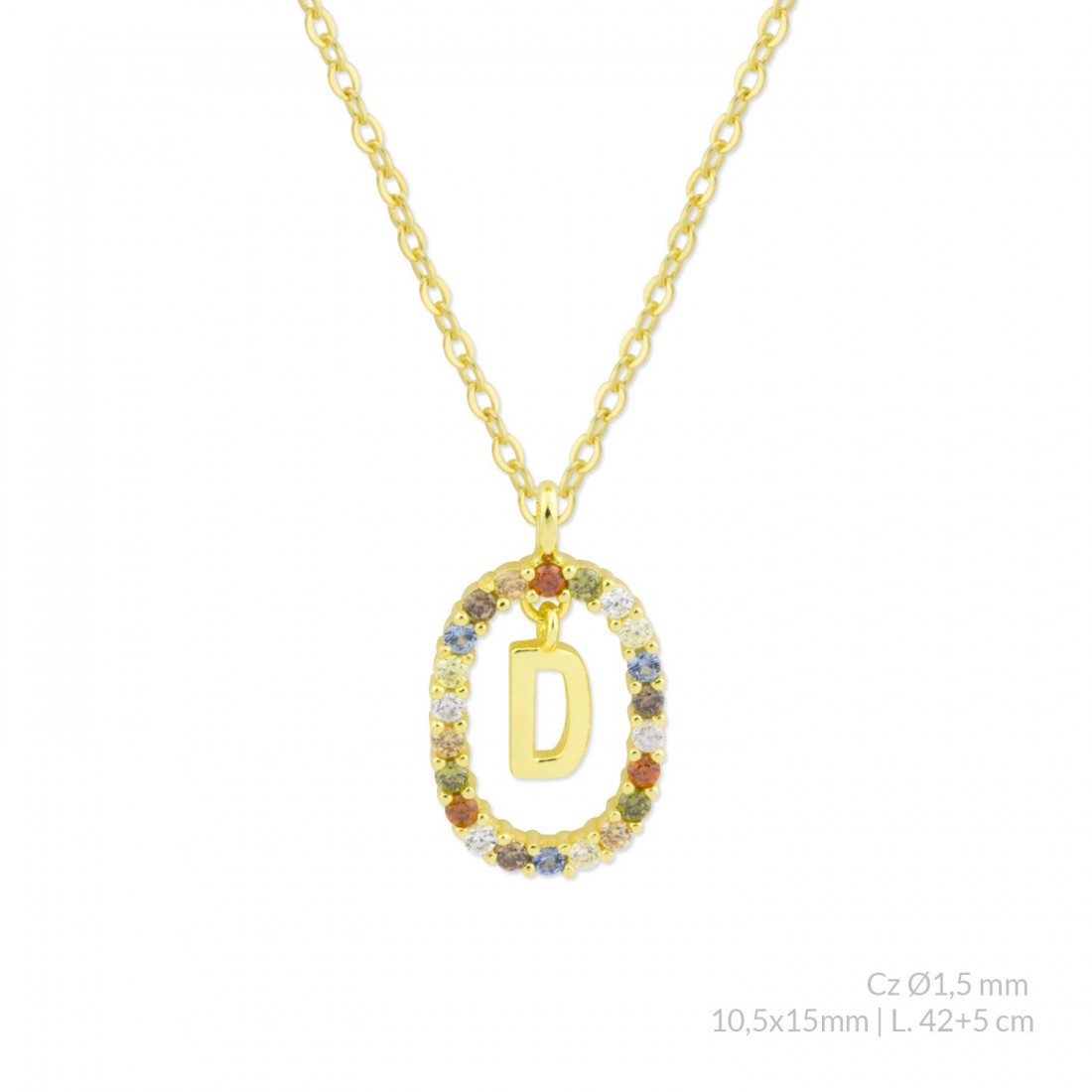 Gargantilla de Plata de Ley chapada en oro con circonitas de color de Ø1.5 mm.