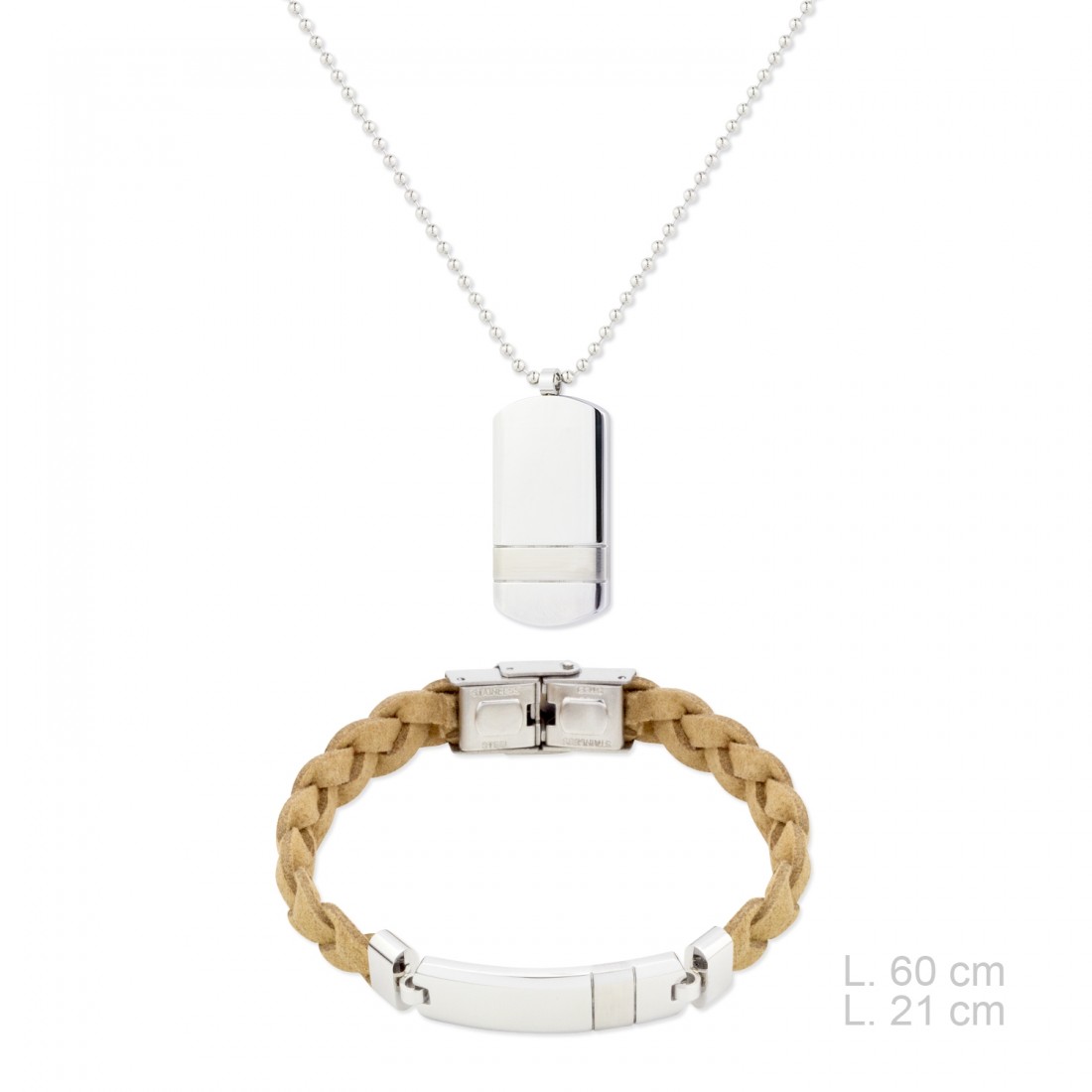 Medida del motivo de la pulsera: 12 x 40 mm. Medida del motivo de la gargantilla: 40 x 21 mm.