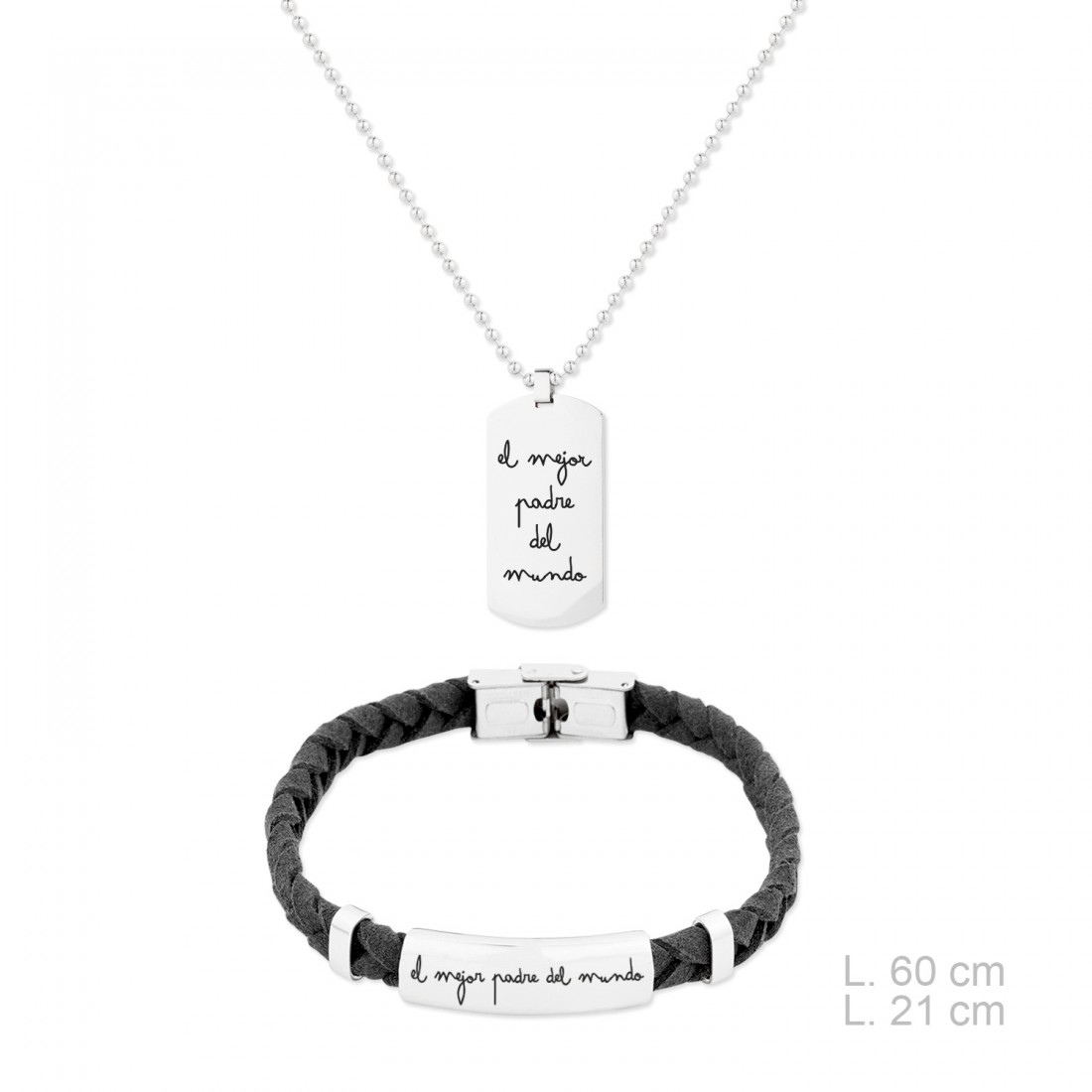 Longitud de la pulsera: 21 cm. Longitud de la gargantilla: 60 cm (no incluye cadena de extensión).