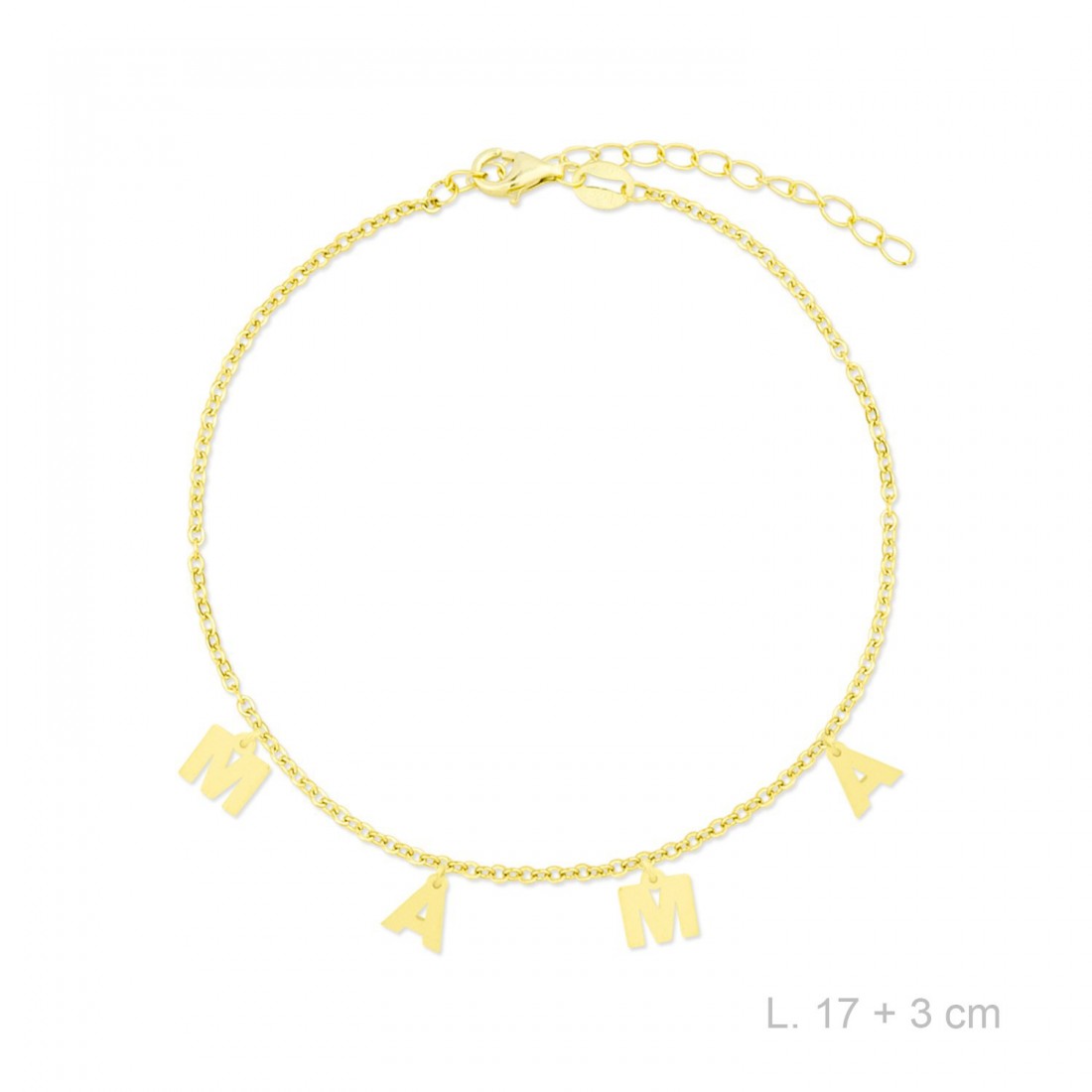 Pulsera de Plata de Ley chapada en oro con la palabra MAMA en charms.
