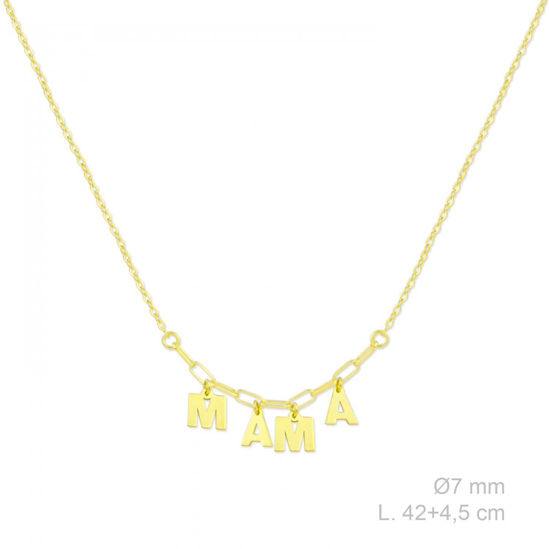 Gargantilla de Plata de Ley chapada en oro con la palabra MAMA en charms.