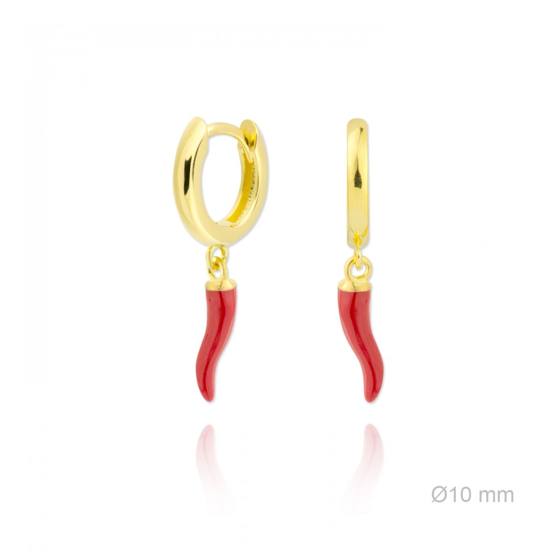 Aros de Plata de Ley chapados en oro de 10 mm de diámetro de los que cuelga una guindilla de esmalte.