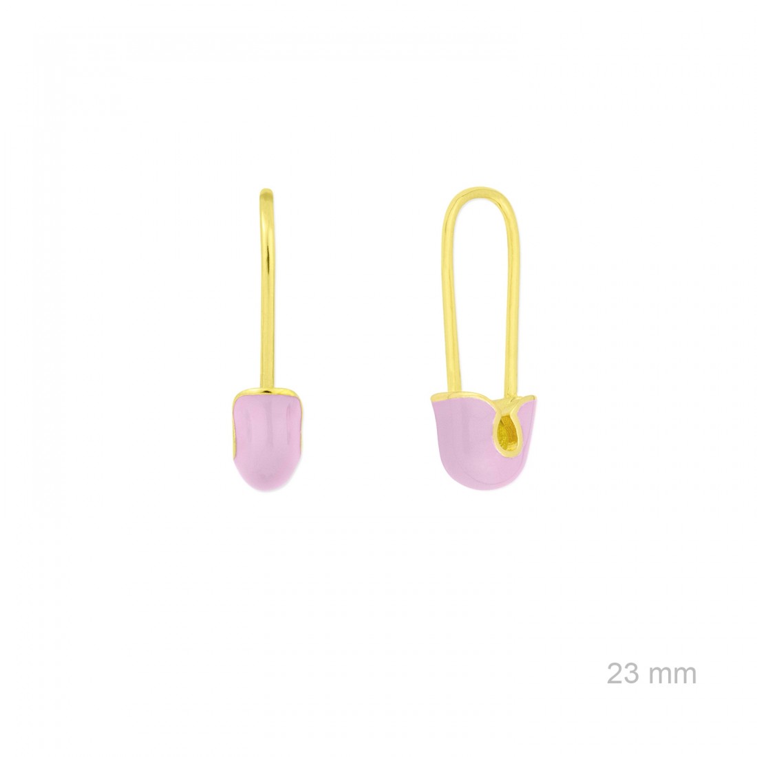 Pendientes de Plata de Ley chapados en oro con forma de imperdible de 23 mm de alto con esmalte lavanda.