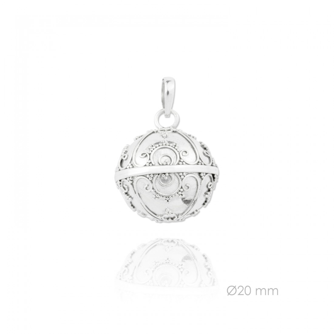 Llamador de ángel de Plata de Ley de 20 mm de diámetro. No incluye cadena.