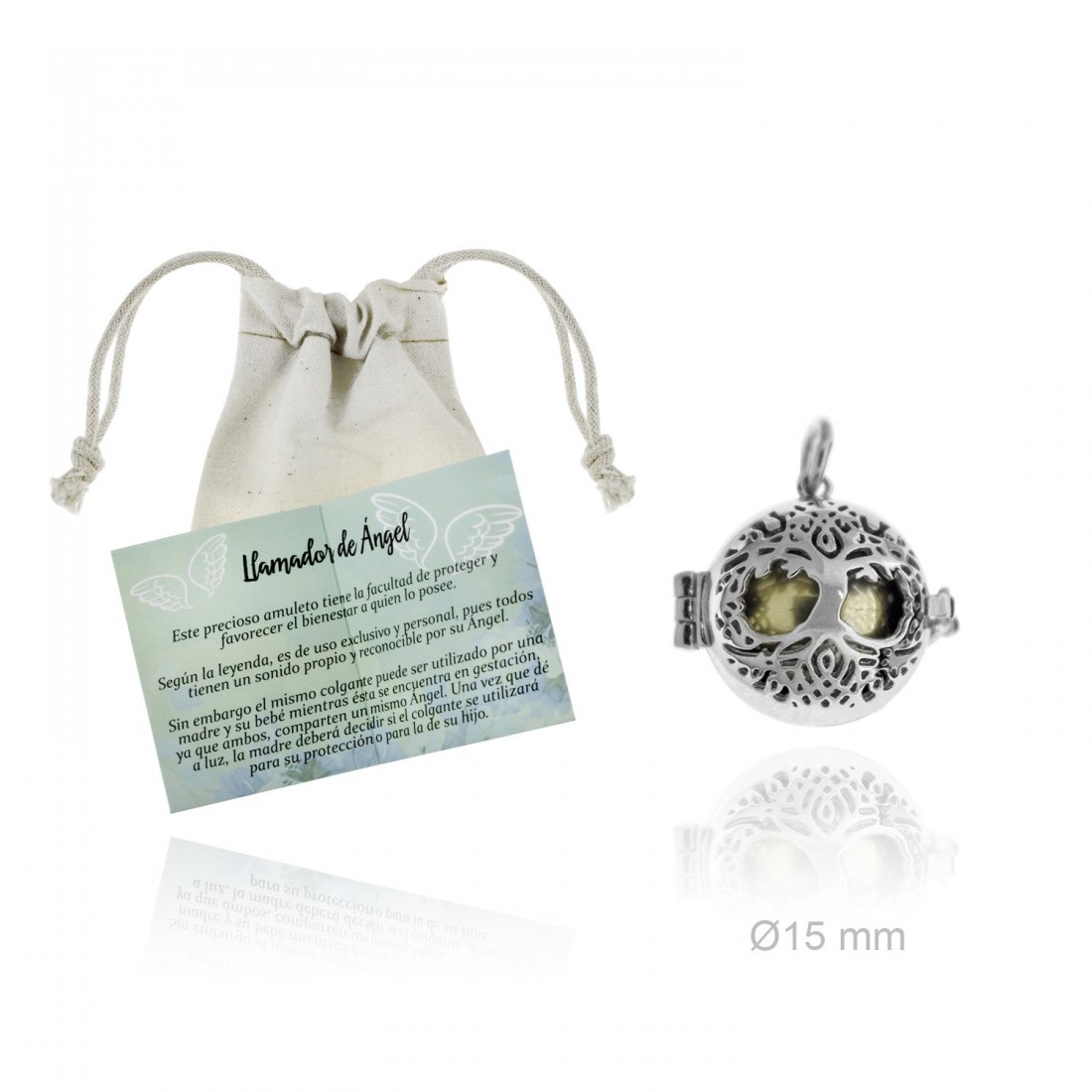 Llamador de ángel de Plata de Ley con motivo del árbol de la Vida de 15 mm de diámetro. No incluye cadena.
