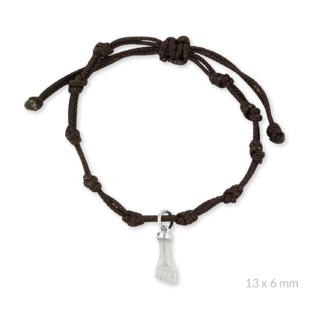 Pulsera de hilo marrón con Higa de madreperla de Plata de Ley | 10 nudos.