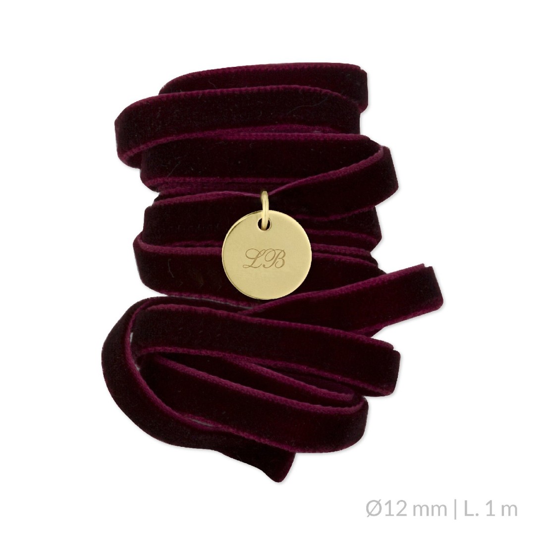 Medalla ramo de novia de Plata de Ley chapada en oro con lazo de terciopelo burdeos personalizable con texto y números.