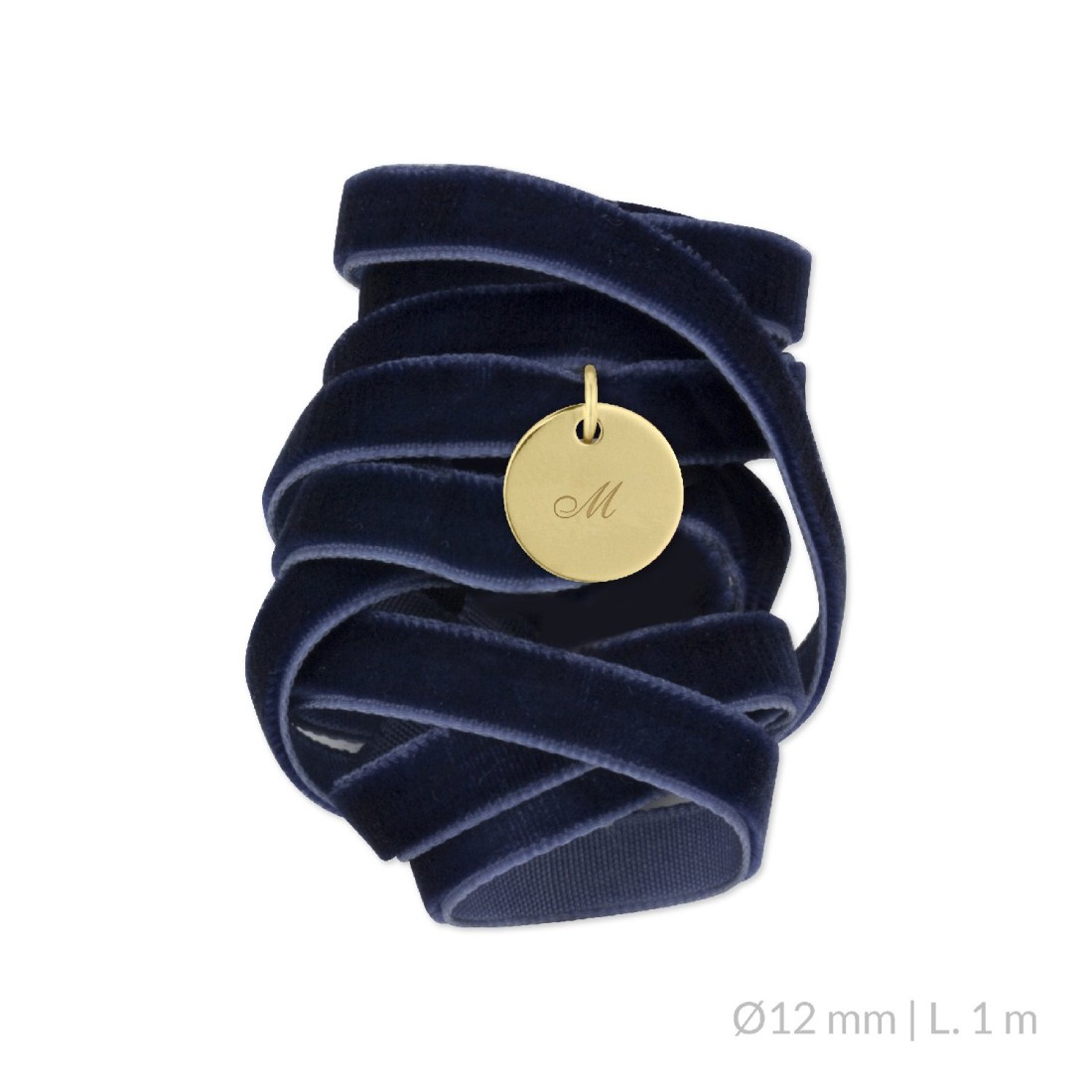 Medalla ramo de novia de Plata de Ley chapada en oro con lazo de terciopelo azul marino personalizable con texto y números.