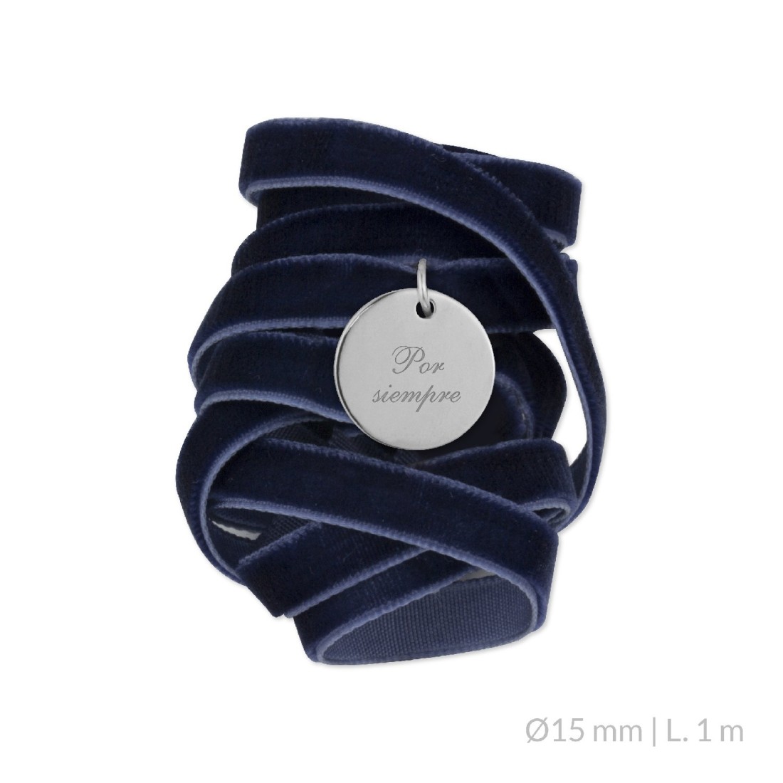Medalla ramo de novia de Plata de Ley con lazo de terciopelo azul marino personalizable con texto y números.