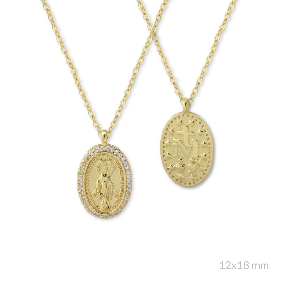 Medalla de Plata de Ley chapada en oro de la Milagrosa con circonitas.