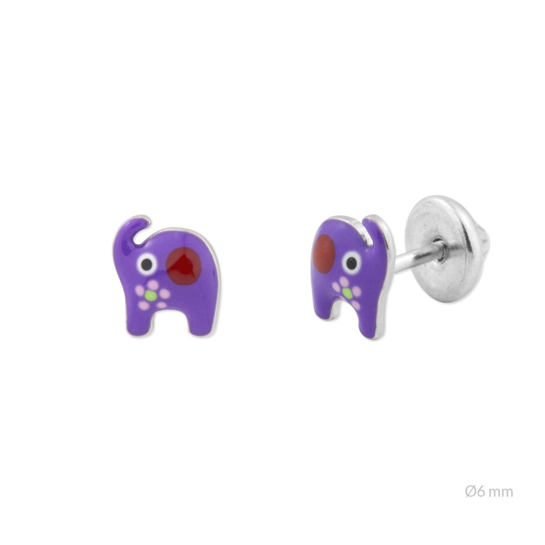 Pendientes de Plata de Ley con elefantes de esmalte. Cierre de rosca.