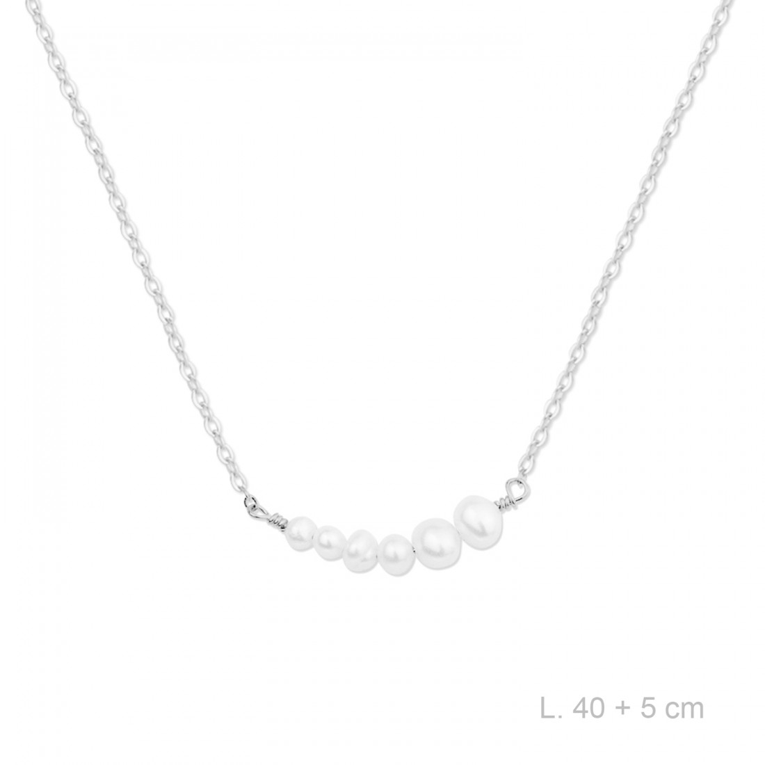 Gargantilla de Plata de Ley con motivo de perlas cultivadas de diferentes tamaños.