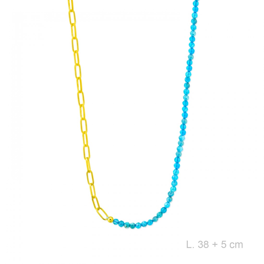 Gargantilla de Plata de Ley chapada en oro con eslabones largos y turquesa facetada de 2 mm.