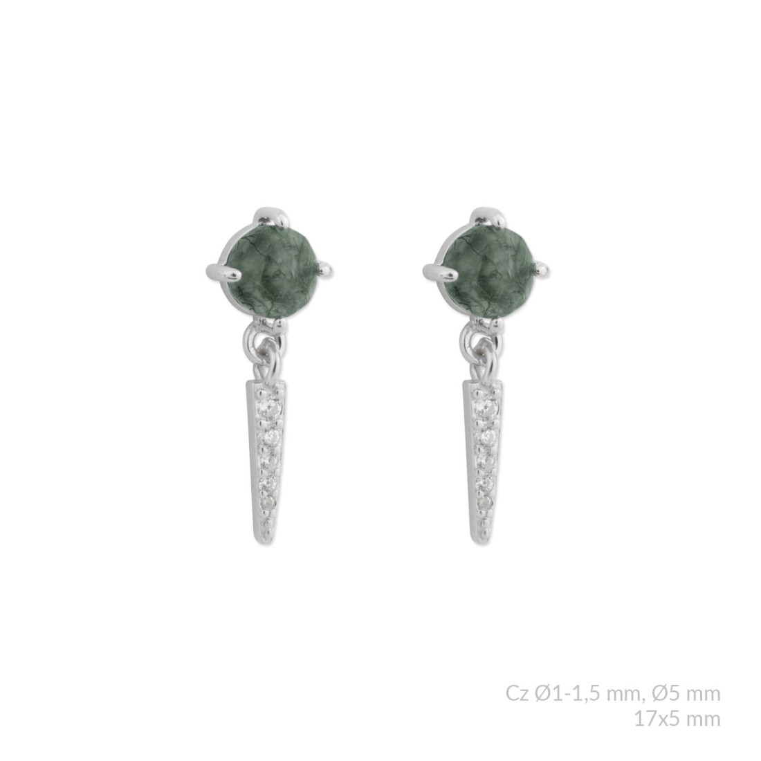 Pendientes de Plata de Ley con ágata verde y circonita blanca.