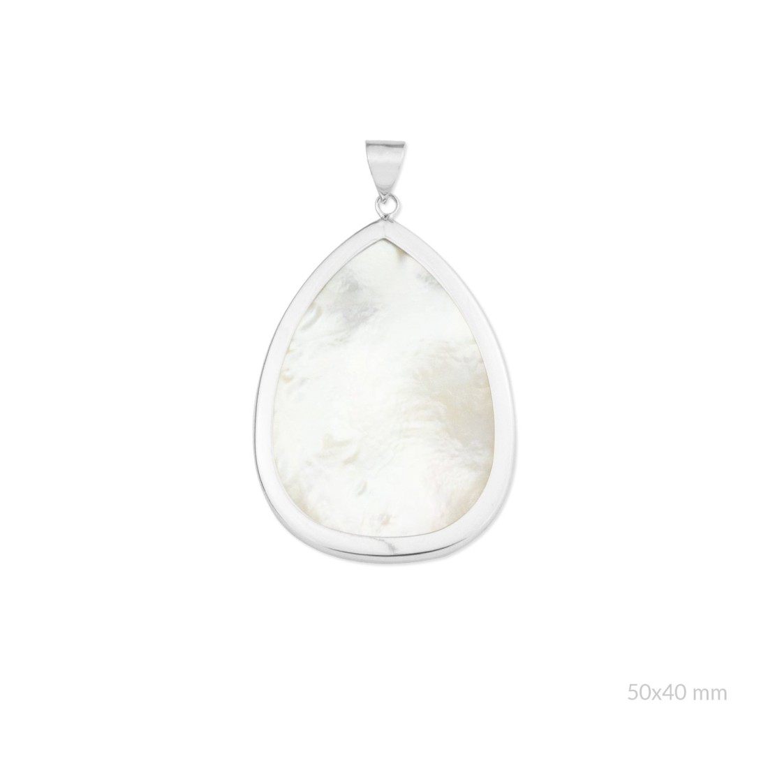 Colgante de nácar en forma pera y montura de Plata de Ley  | 40x50 mm