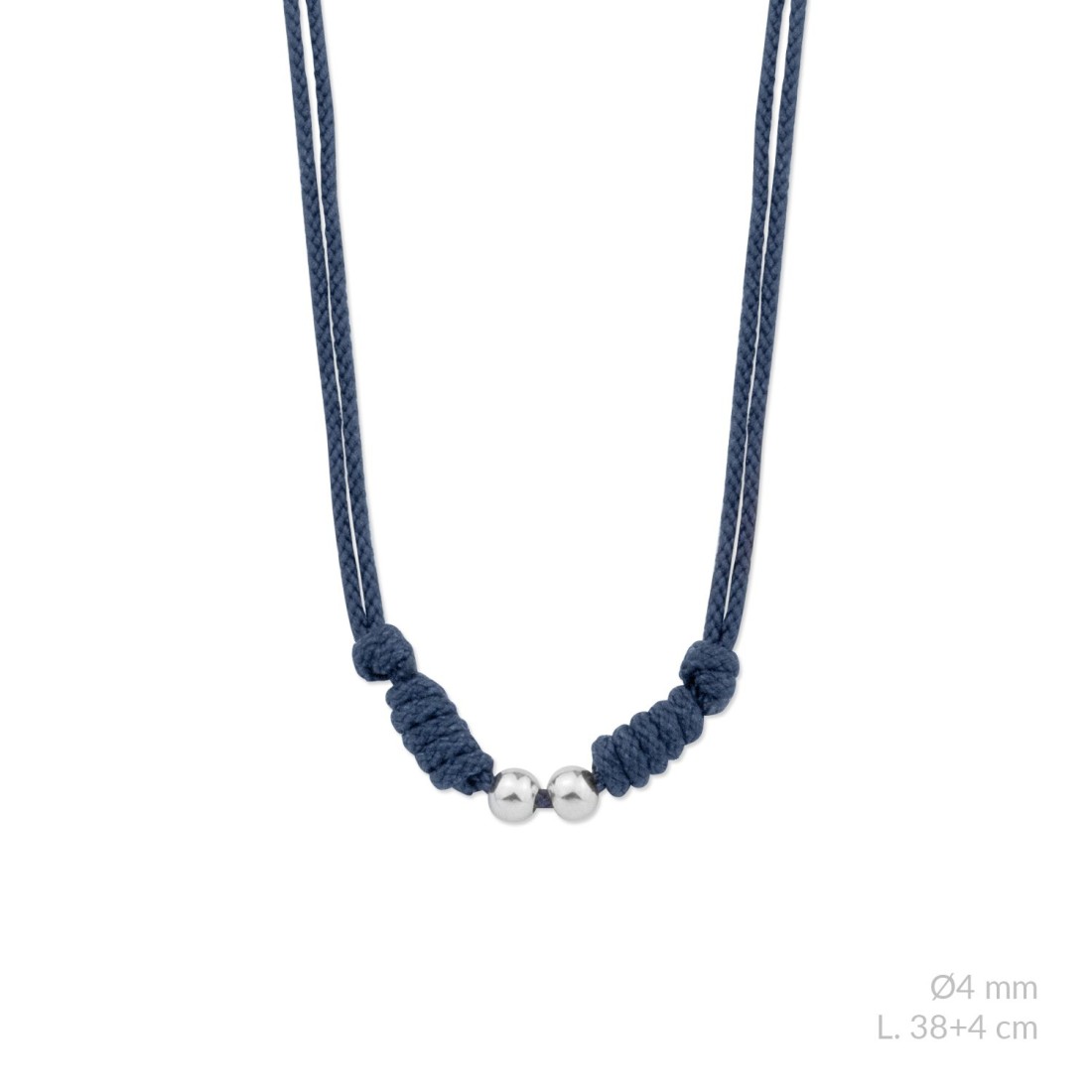 Gargantilla de hilo trenzado azul, 2 bolitas y terminales de Plata de Ley | L. 38+4cm