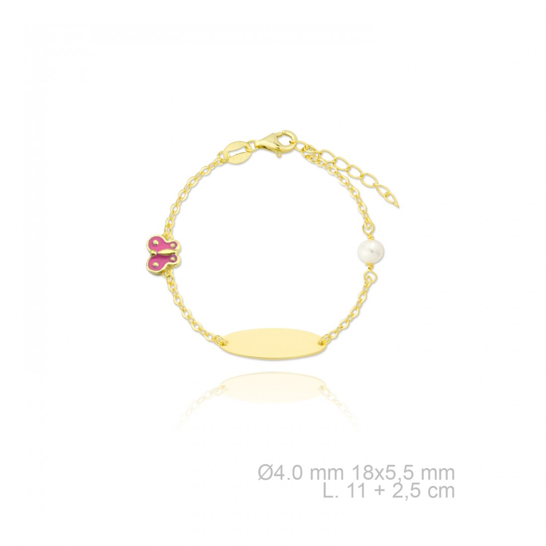 Esclava de Plata de Ley chapada en oro con mariposa de esmalte rosa.